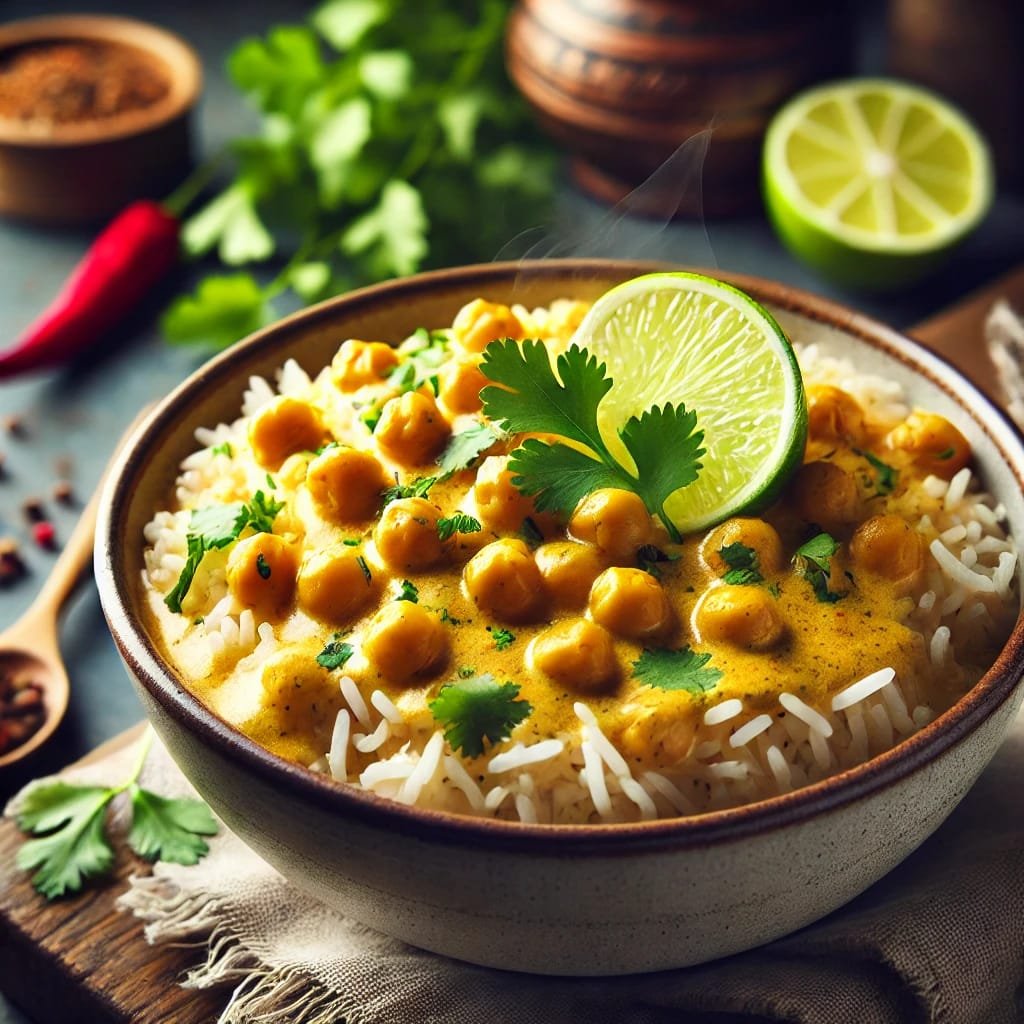 This dish is a perfect fusion of creamy, spiced, and tropical flavors—great for a quick yet comforting meal.